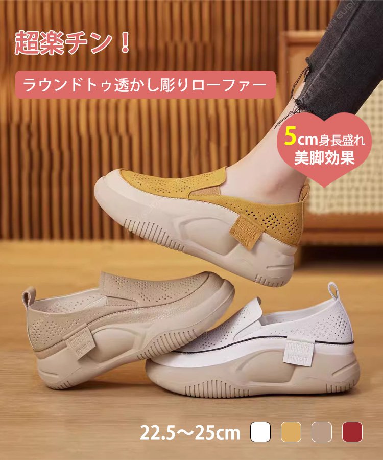 ラウンドトゥ透かし彫りローファー
